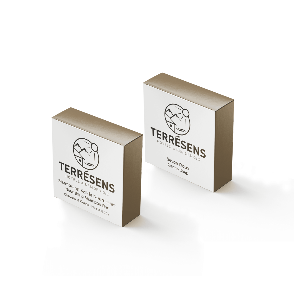 Pour les hôtels et établissements souhaitant se positionner comme éco-responsables, nous proposons une alternative aux produits en flacons en plastique : un shampoing solide pour les cheveux et le corps.